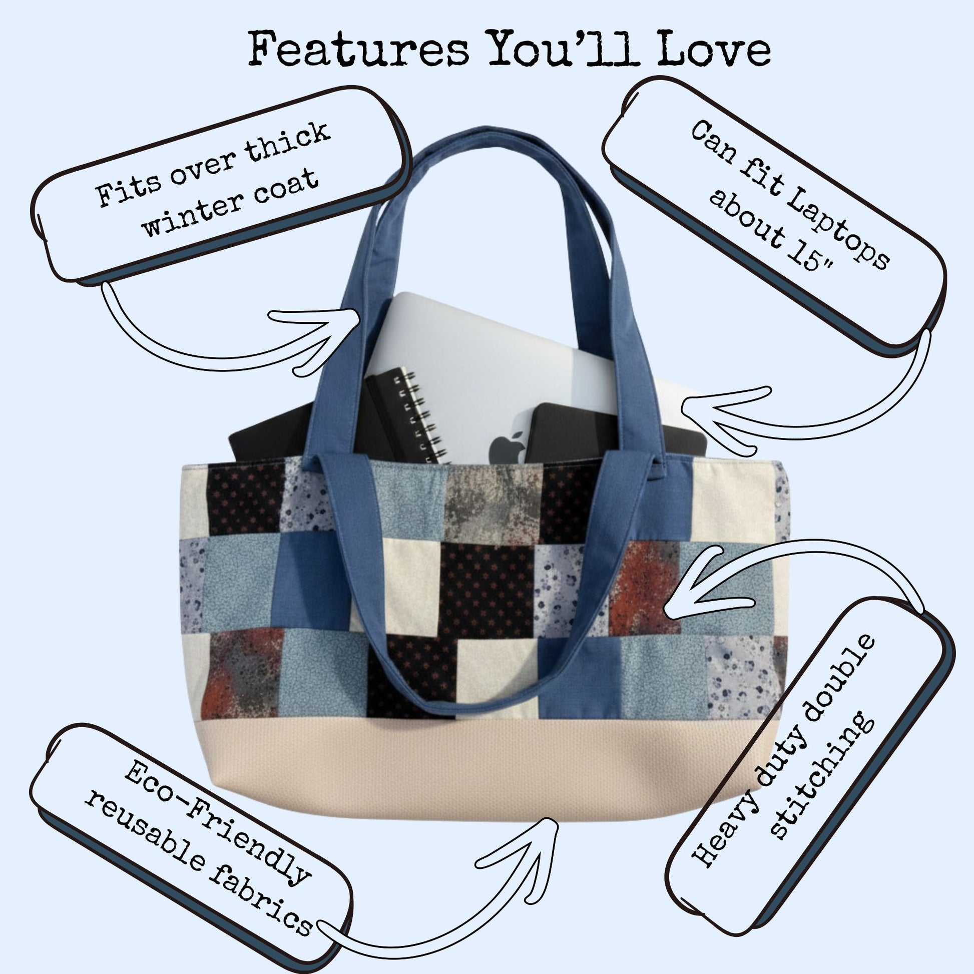 Because each bag is handmade in small batches, fabric placement and fabric pieces may vary slightly, making your tote truly one-of-a-kind.